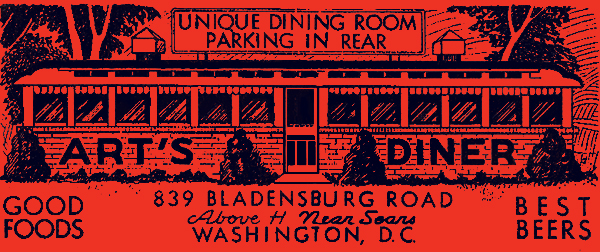On a modern street map, it takes a minature T-square to calculate that the Cab Diner would have a prime location today. It stood virtually at the front door of the Kennedy Center. Today