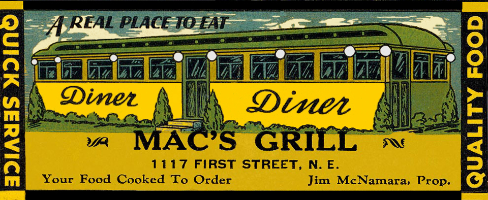 The Heurich Brewery, the neighborhood's century-old centerpiece and the Cab Diner's landlord, went out of business in 1956 and was demolished for bridge approach construction a few years later. During the early 1960s, this corner of the Foggy Bottom street grid was gradually obliterated to build the expressway loops that, viewed on a landing approach to National, resemble a knot of spider veins. The Cab Diner stayed in business until its block, one of the last survivors, was demolished in 1964.